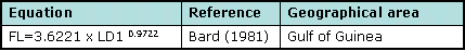 the following relationships are applied (see also Length-Weight